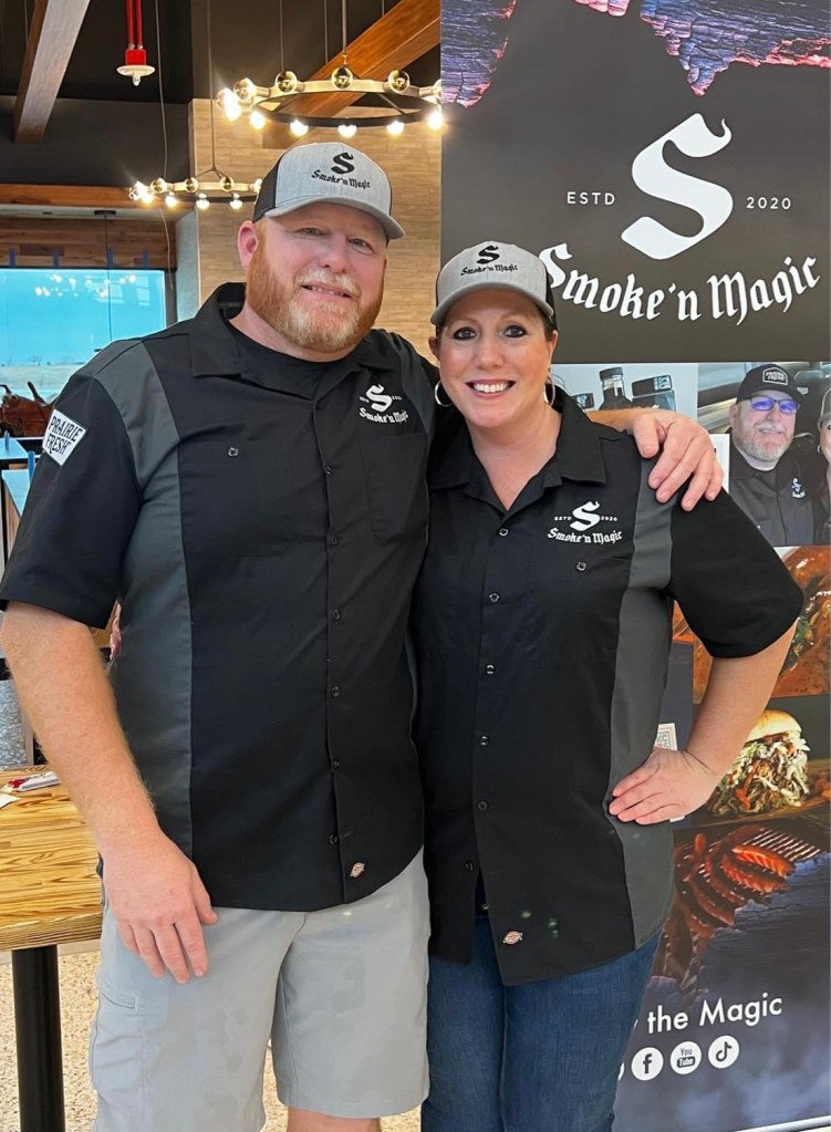 They were a breakout competition BBQ team in 2022, winning their first KCBS Grand Championship and the Made for KC Grand Championship. The latter included putting their own menu creation and recipes in the new Made for KC BBQ Experience restaurant in a new terminal at Kansas City International Airport. Brad Colter and Breana Via of Smoke N Magic BBQ are living an open-fire dream these days – while dealing with a whirlwind schedule for the just-opened restaurant. On Episode 201 of the Tailgate Guys BBQ Podcast, we visit with Brad and Breana about life and what’s ahead for the talented and personable couple.