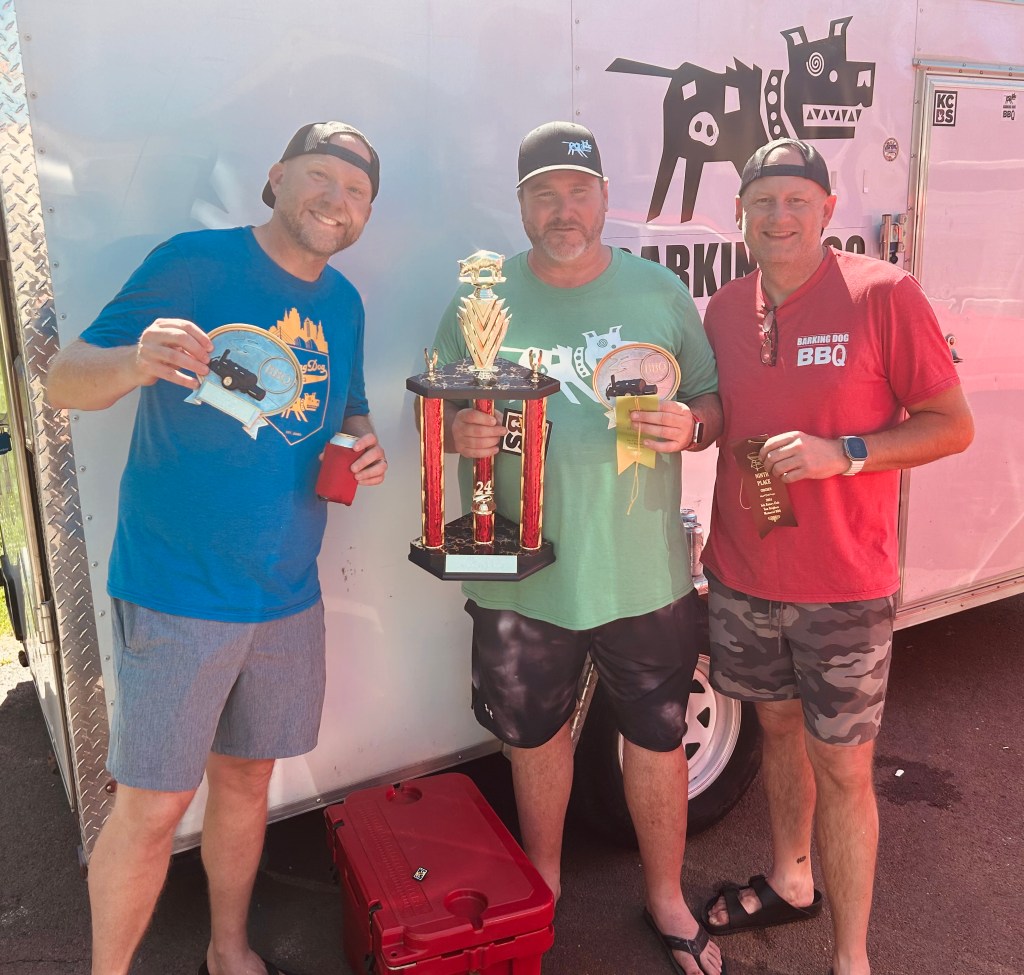 We’re all about celebrating the iconic BBQ teams on the Tailgate Guys BBQ Podcast, but we also love to shine the spotlight on those up-and-coming teams who achieve big things. This week on Episode 261 of the Tailgate Guys BBQ Podcast, we focus on Barking Dog BBQ out of Kansas City, a team of childhood friends Dave Lillis, Kevin Bunting and Brian Tuttle. Barking Dog BBQ (we explore the origin and meaning of that unique team name) just won its first career KCBS Grand Championship and we talk the guys about their love of BBQ and how they’ve been able to take it to a championship level.